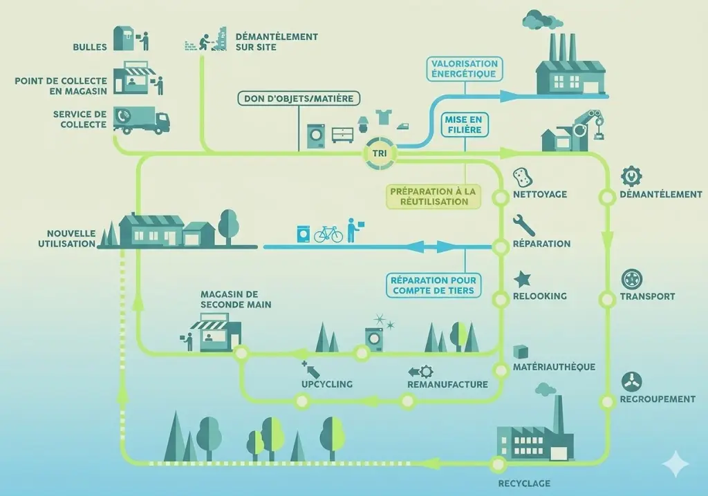 - Création d'emplois locaux : Le réemploi et la réparation sont des leviers majeurs pour maintenir des emplois non délocalisables et développer de nouveaux métiers.